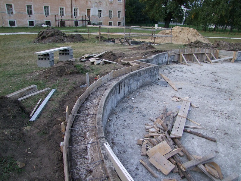 Zmluva o dielo bola uzatvorená 22. augusta 2011, stavenisko odovzdané o štyri dni neskôr. V skrátenom popise prác úrad uvádza, že firma realizovala budovanie vodovodnej prípojky, kanalizácie, montážnej šachty s technológiou, vlastnú rekonštrukciu fontány a inštalovala tryskový systém.