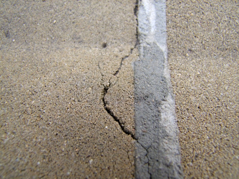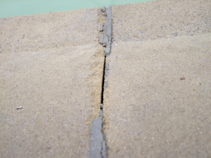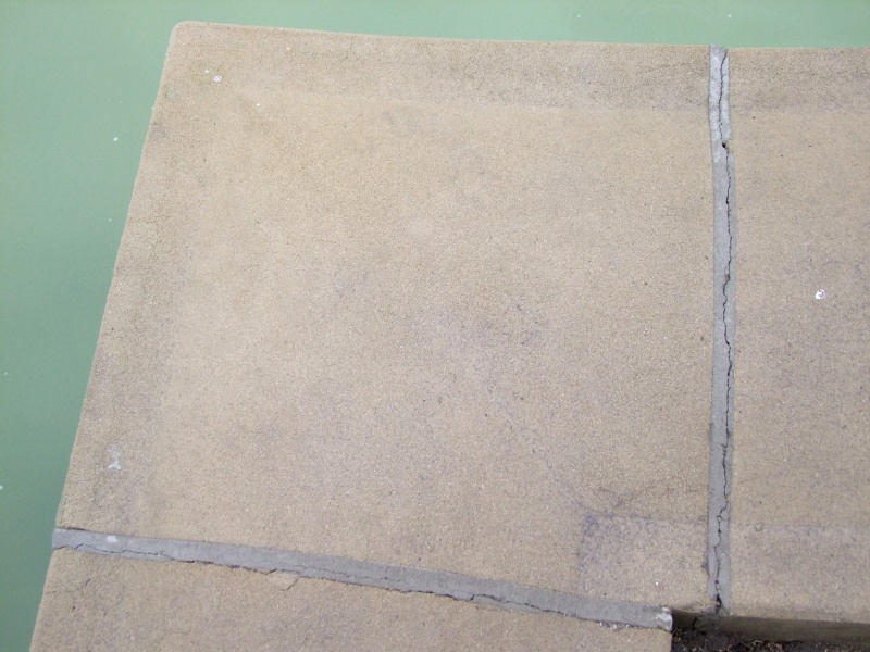 Vypadnutá "špárovačka". Jednotlivé segmenty sú vyšpárované rôznym typom špárovačiek - našli sme tmavšiu a bledšiu šedú. Na viacerých miestach nedrží.
