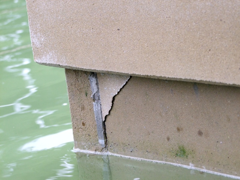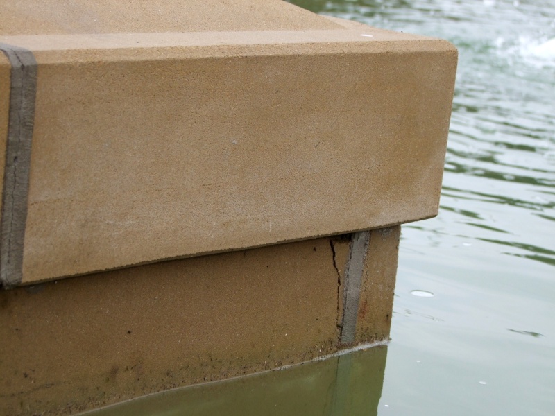 Kvalitné? Laickým okom možno usúdiť, že kamenný obklad z armovaným segmentov nie je práve z kvalitného materiálu. Pravdepodobne vysoký obsah piesku spôsobuje, že sa už na viacerých miestach popraskal a "drobí sa".