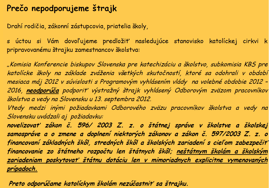 Cirkevná škola štrajk nepodporuje