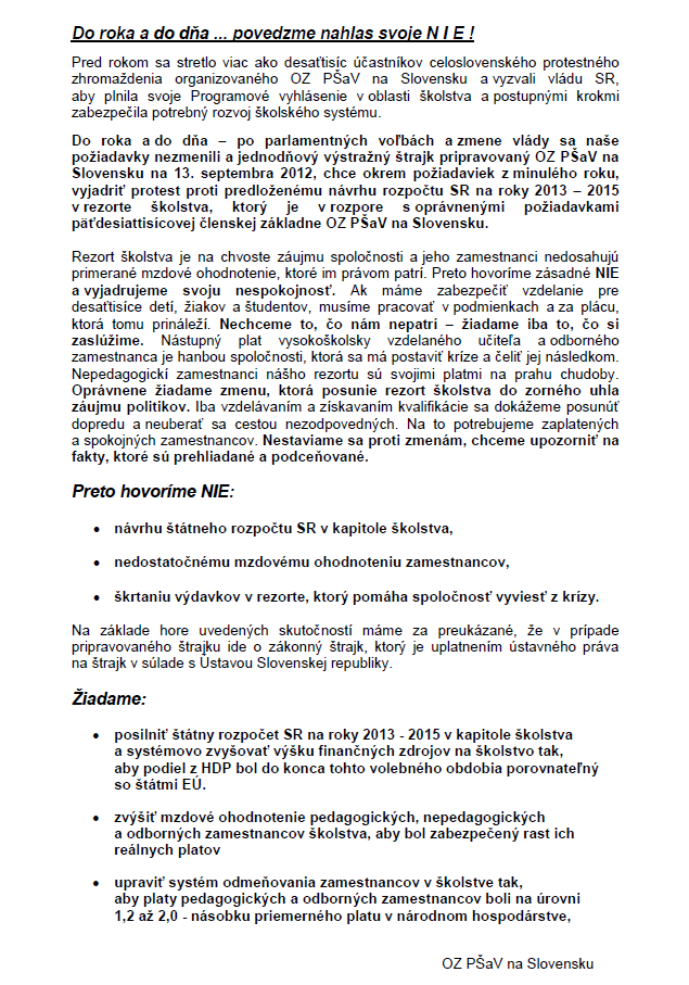 za co chcu strajkovat maju malo aj tak maju viacej volna a su v teple tak o com to je hroza darmozracki ucitelia08.09.2012 16:54:50 | jano