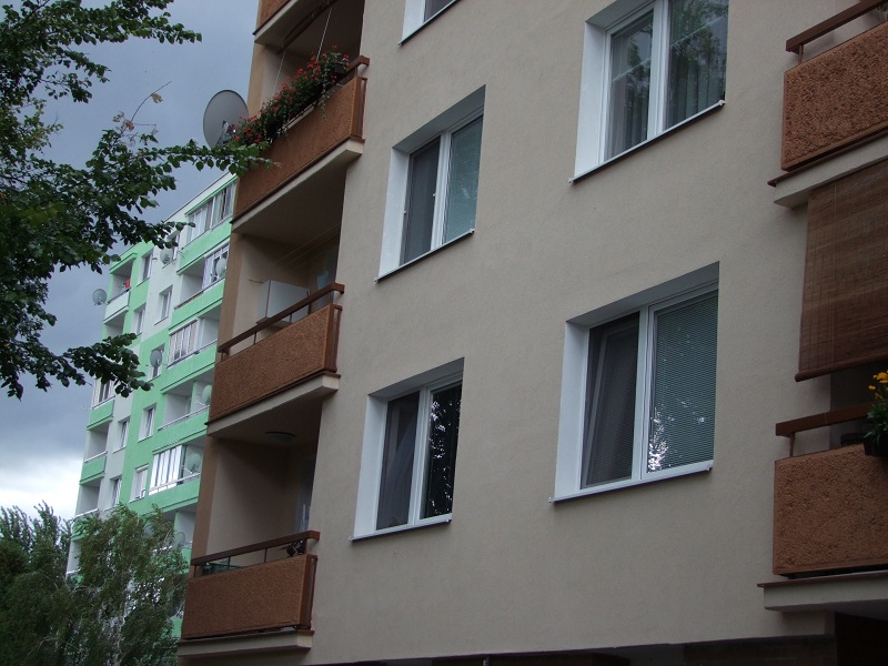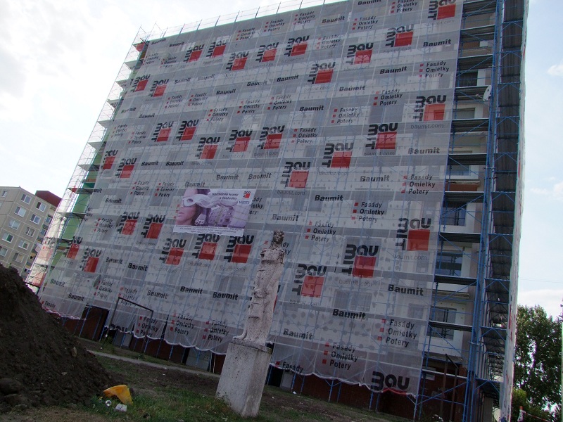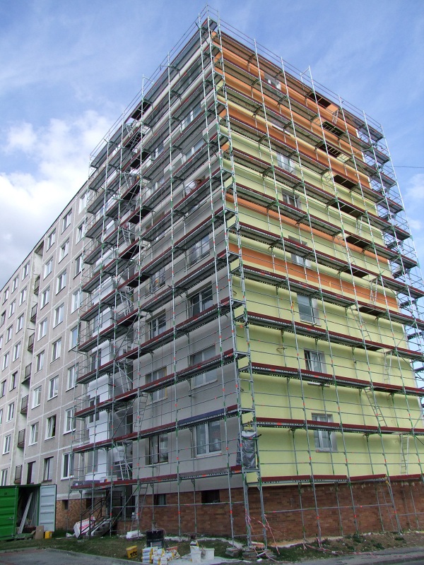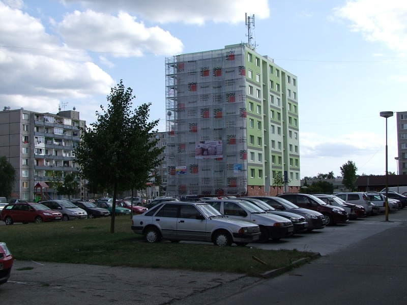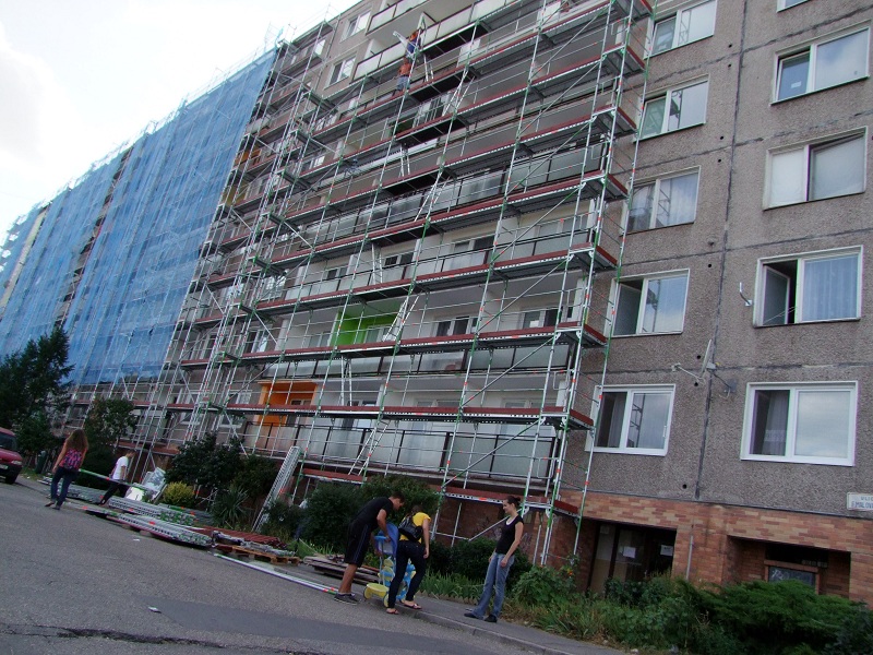 Minulý rok sme boli na centrálnom sídlisku v Domkoch svedkami zateplenia prvého činžiaka s ôsmimi poschodiami, toto leto k nemu pribudol ďalší - zelený.