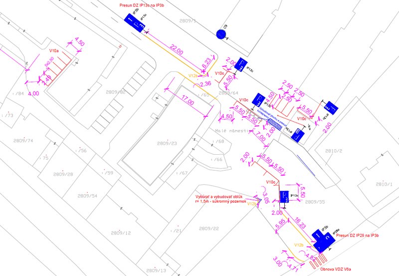 Osadené bolo v súčasnosti vertikálne značenie, počíta sa aj s vyznačením čiar na zemi, čo však závisí na počasí.