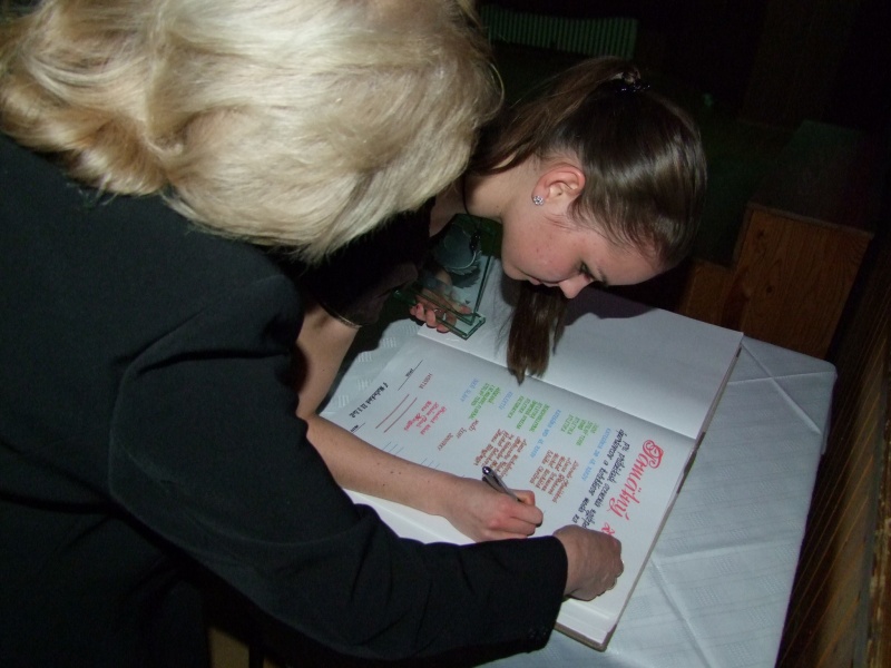 Lucia Truksová, reprezentantka Malaciek v stolnom tenise, sa podpisuje do pamätnej knihy.