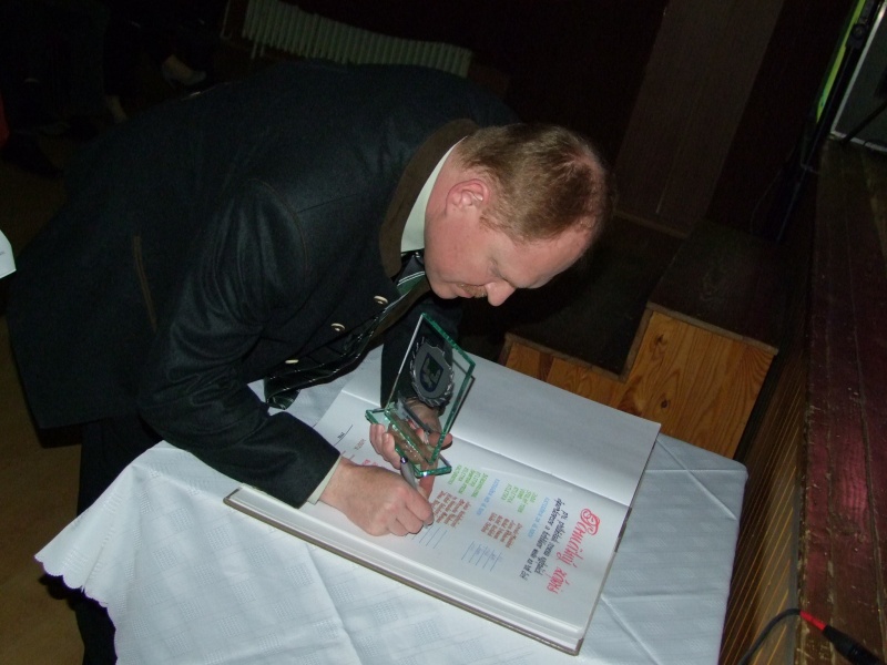 A svoju knihu spomienok daroval najmladšiemu ocenenému vodnému motoristovi Michalovi Ichmannovi.
