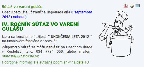 Ak ste sa nestihli zapojiť a chceli by ste si zmerať sily v "gulášmajstrovaní", tak nabližšie 8. septembra sa uskutoční súťaž v Kostolišti.