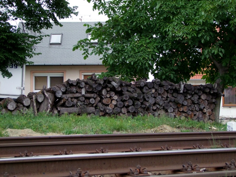Drevo uložené pri trati. Nevieme, komu patrí, ale či je toto vhodné miesto na uskladnenie je otázne.